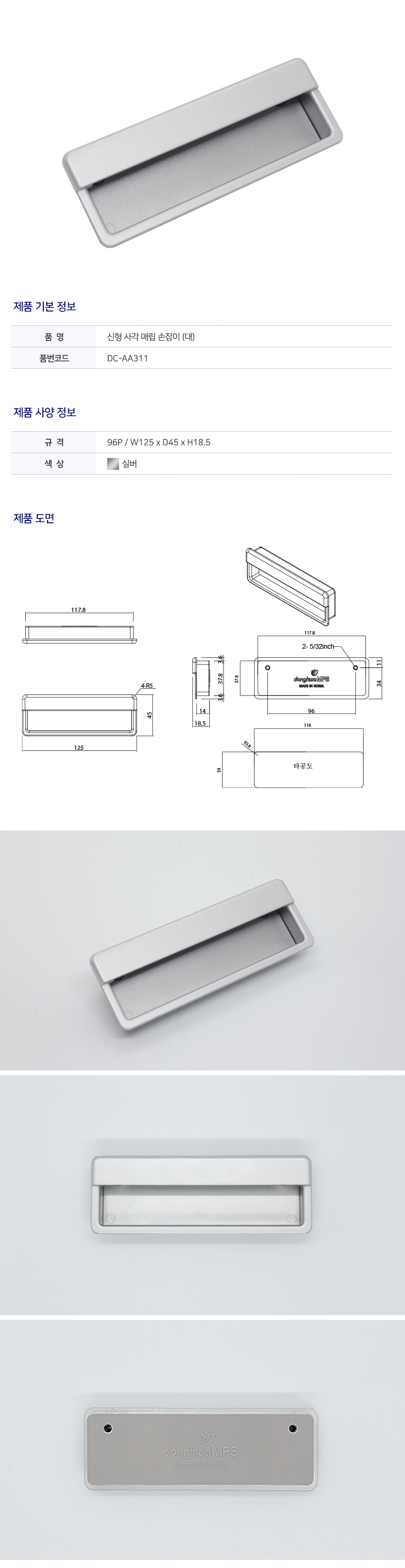 [DC-AA311] 신형 사각 매립 손잡이 (대)